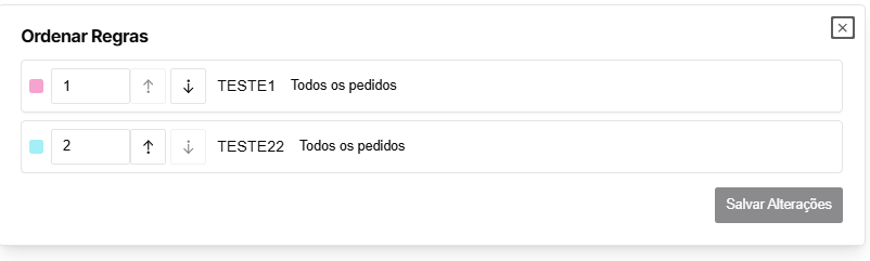 - Alterações em regras não afetam pedidos já criados anteriormente;