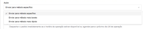 - Enviar para método específico: escolha uma transportadora e modalidade específicas.