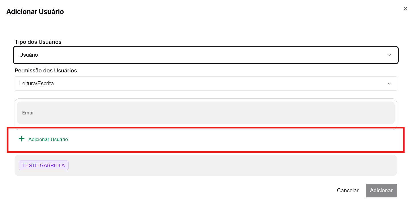 Você pode adicionar mais de um usuário por vez, clicando em "adicionar usuario"