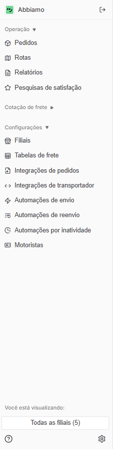 No menu lateral da plataforma, clique em no ícone de engrenagem que fica na parte de baixo da página.