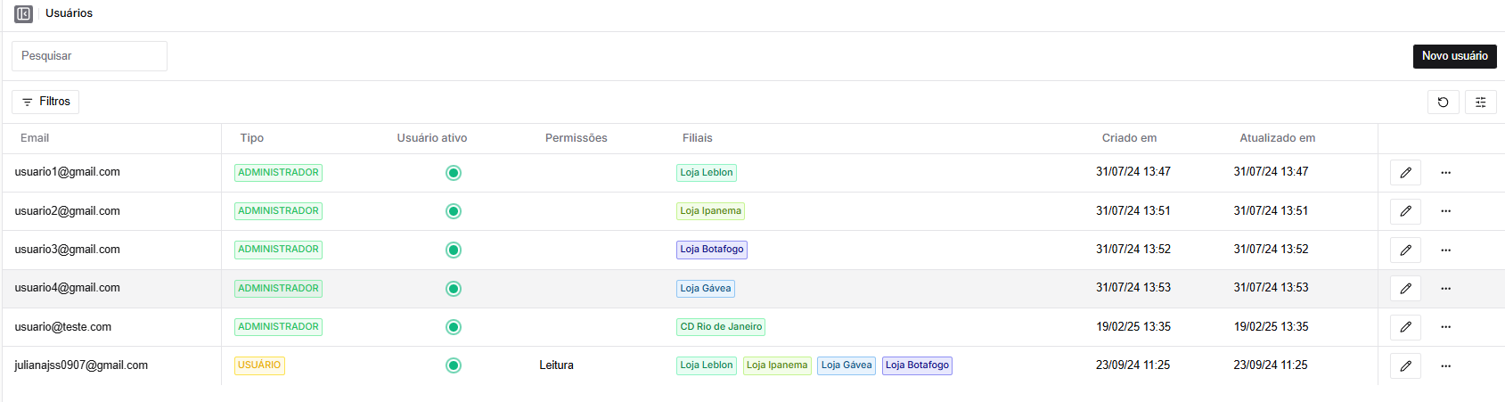 Administradores e usuários precisam ser vinculados manualmente às filiais.