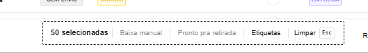 Ao selecionar os pedidos irá aparaecer na parte de baixo da tela um menu com opções de ação. Selecione a opção "Etiequetas".