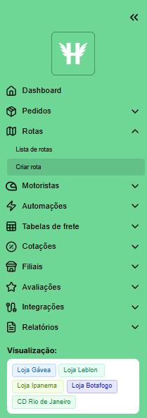 1. Vá até a seção "Rotas" e selelcione a opção "Criar Rota"