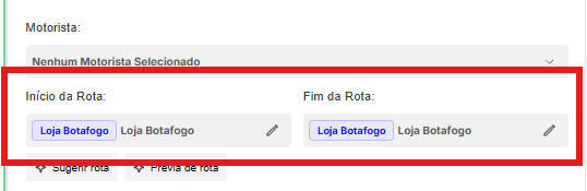 - Selecione a loja onde será iniciada a rota e onde será finalizada;