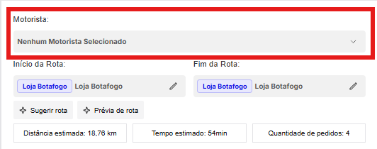 - Uma vez que a rota já está da forma desejada, basta selecionar o motorista responsável por realizar a rota.