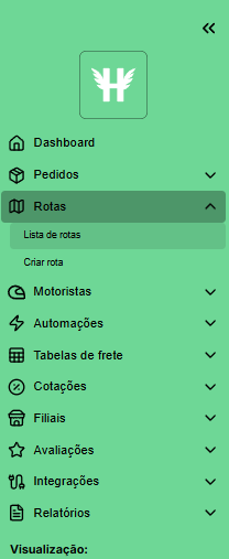 1. Vá até a seção "Rotas" e selelcione a opção "Lista de Rotas"