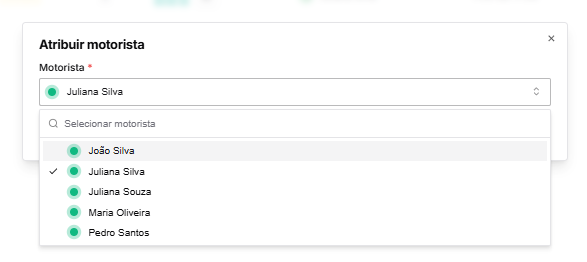 Selecionando essa opção será aberto um menu onde você poderá selecionar um novo motorista.