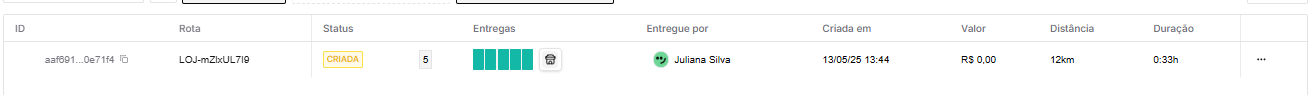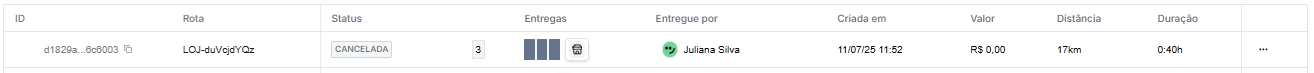 Depois que o motorista atribui status de falha ou sucesso a um dos pedidos da rota, já não é mais possível realizar o cancelamento da rota;