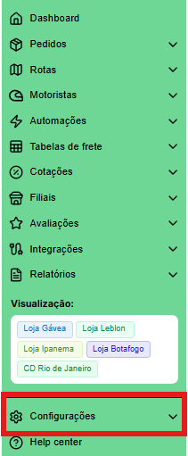 - Para que as informações comecem a ser enviadas para o seu sistema basta cadastrar a URL da webhook na Abbiamo. Para isso, primeiro acesse a seção de "Configurações"