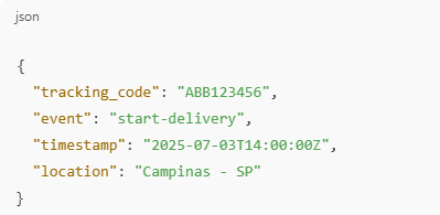 Campos obrigatórios: tracking_code, event, timestamp,location.