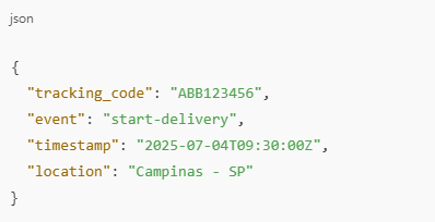 Caso a entrega não tenha sido realizada com sucesso, o sistema da transportadora deve enviar o seguinte evento à Abbiamo: