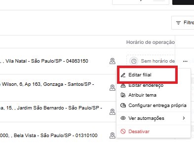 No menu suspenso, selecione a opção Editar filial.
