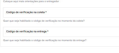 Em configurações, também será possivel habilitar códigos para coleta e entrega (caso a transportadora tenha a funcionalidade).