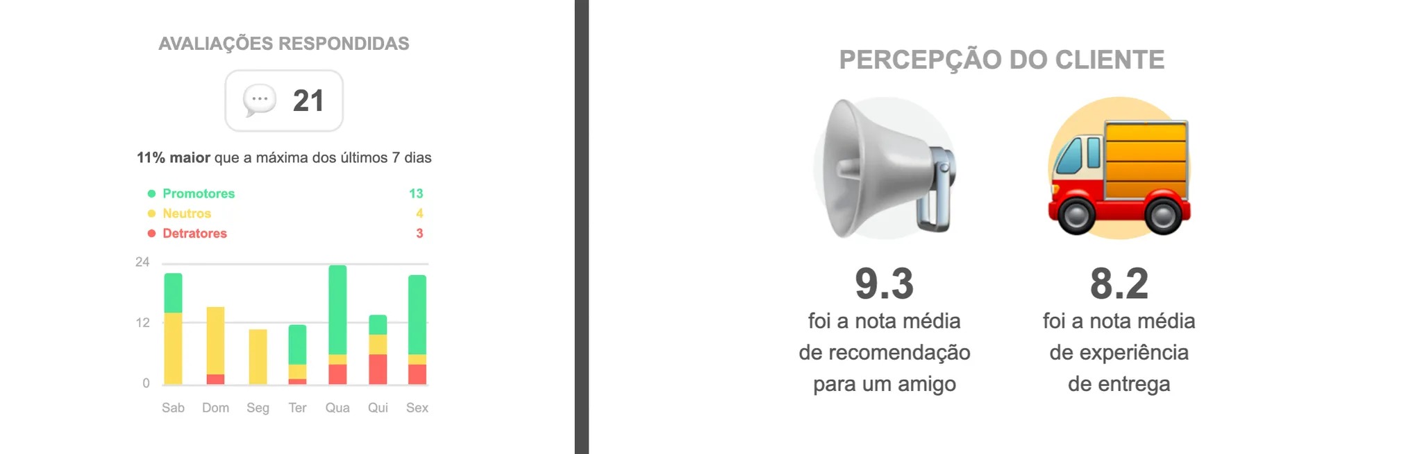 O resumo diário permite que a operação acompanhe a percepção do cliente em tempo real;