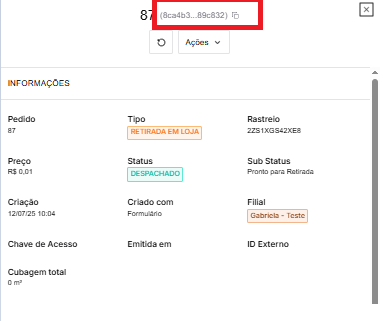 Na mesma tela, ao lado do título do pedido (no topo da aba lateral), você encontrará o Invoice ID, entre parênteses. Esse ID é único e identifica o pedido internamente.