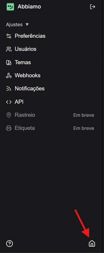 - Clique no ícone de casa ? localizado no rodapé do menu lateral para abrir o painel de Configurações.