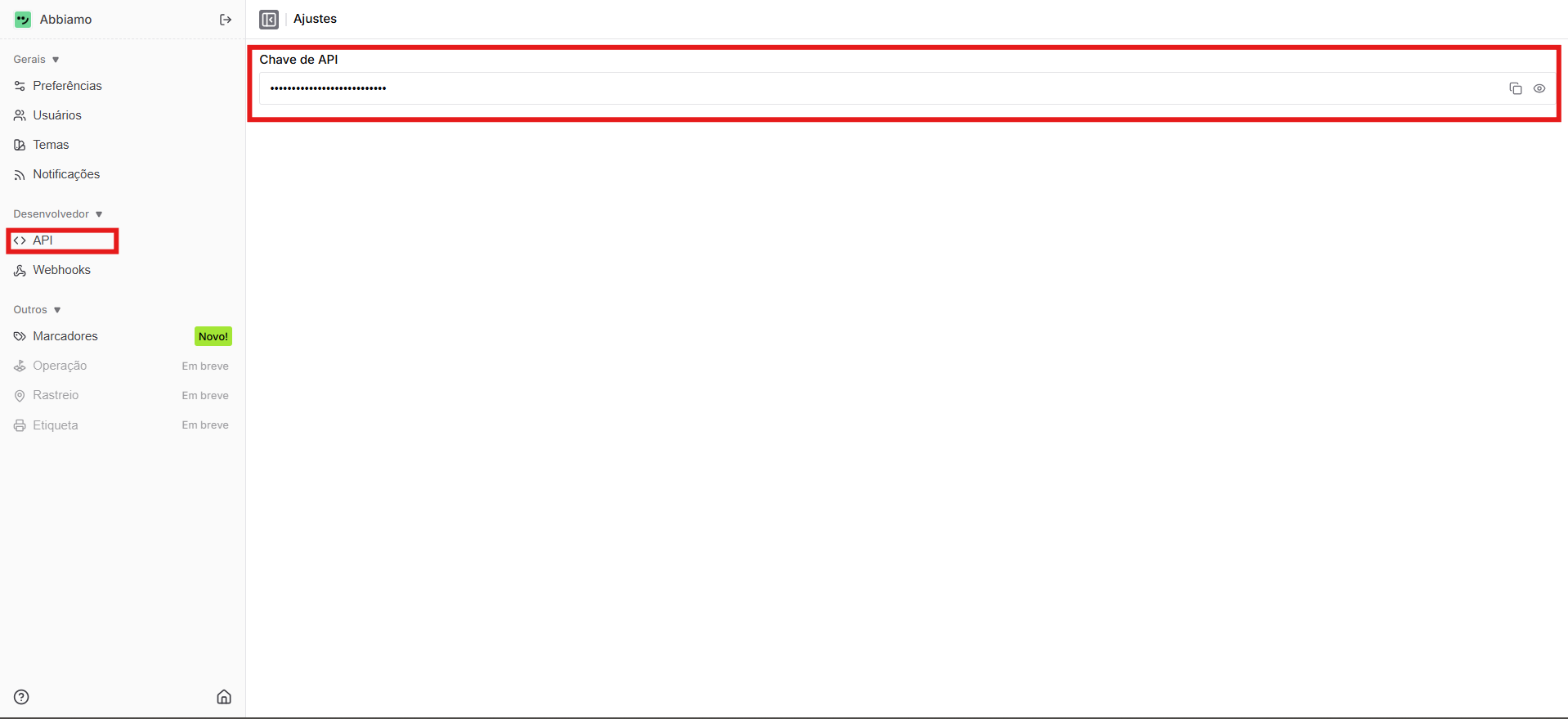 Siga o passo a passo abaixo para visualizar a chave de API na plataforma Abbiamo.