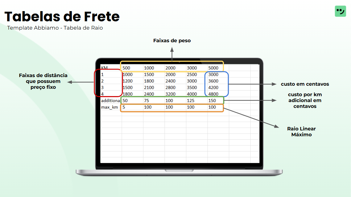 este artigo mostra como preencher corretamente as tabelas de frete utilizadas na Abbiamo, usando os modelos de Tabela de Raio e Tabela de CEP. Com essas tabelas configuradas, a plataforma consegue calcular automaticamente o valor do frete e o prazo de entrega para cada pedido.
