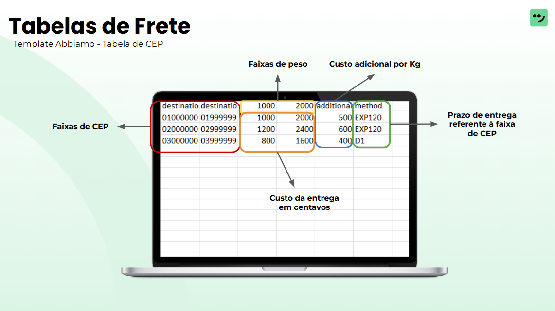Quando um pedido é criado, a Abbiamo usa a tabela de frete cadastrada para identificar: