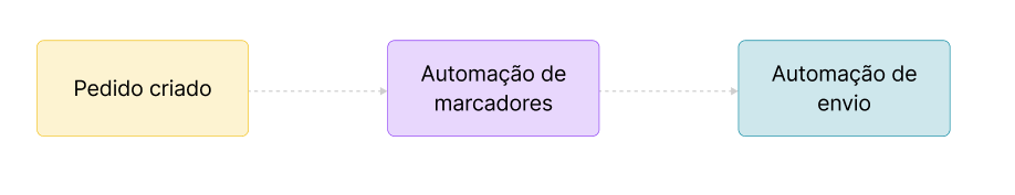 No fluxo atual, sempre que um pedido é criado, o sistema verifica se existem automações de envio configuradas para serem disparadas a partir do evento “Pedido criado”. Com a introdução da automação de marcadores, incluímos uma etapa adicional antes da automação de envio: