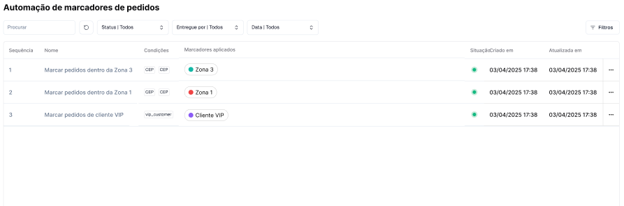 Na imagem de exemplo abaixo, você pode visualizar como essas regras aparecem configuradas na tela de automações de marcadores.