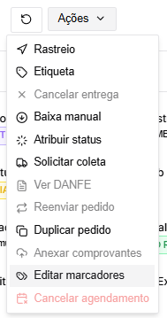 A aplicação manual é feita clicando no pedido > Ações > Editar Marcadores